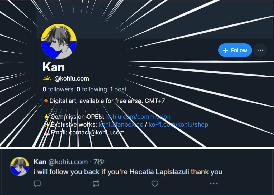 If you have originally followed me via X(Twitter), I am sorry to tell you now that the account is abandoned! Like, all empty! ヾ(⌒(ノ'ω')ノ