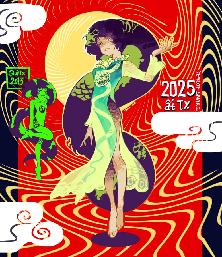 🐍happy new year🐍 back to the tradition of redrawing a zodiac design from 12 years ago. Published date: January 29th, 2025. (On 1st day of Lunar Year 2025!) I can't believe we already moved onto the 3rd revamp design of my original zodiac characters. I will properly show them off someday (all 12 of them!), I always find it's interesting to see how my taste may or may not have changed from each year and then compare them altogether when New Year arrives. By the way, tell me your zodiac, were you born in the year of Snake?