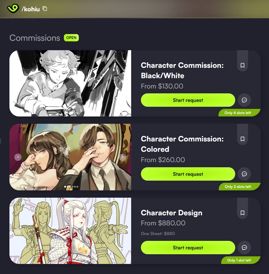 As of 2025, we have extended KOHIU's commission service to VGEN as well. Give it a follow! vgen.co/kohiu
