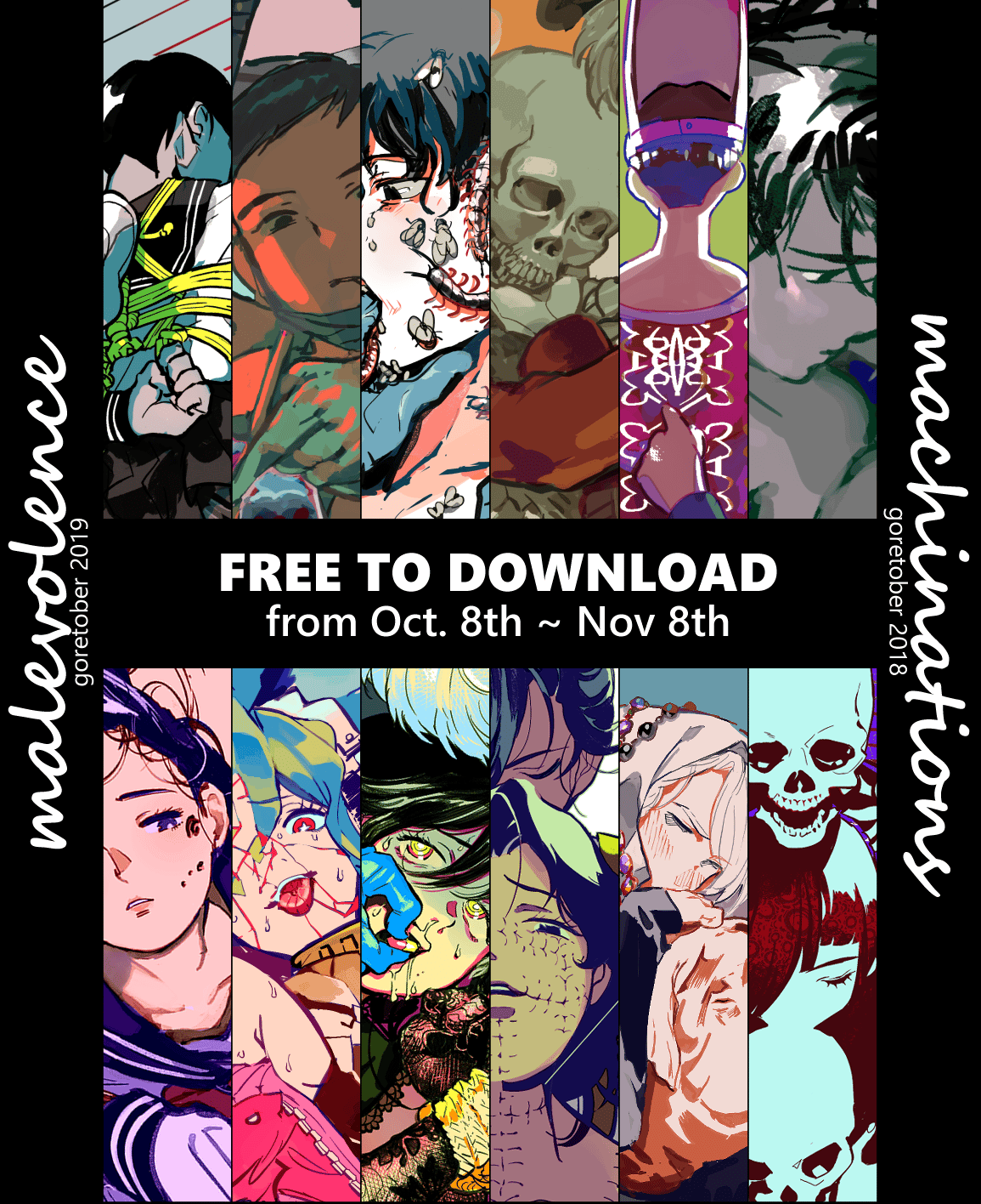 🎃Happy Month of Spookiness🎃You're on the kohiu.com mailing list, so you're getting this email because I basically haunt in your inbox the entire time (woooo~👻). This is a simple announcement for my Goretober Digital Artbook are now available for free until November 8th! [FREE] GORETOBER 2018-2019 ※NC-17. Featured illustrations are suitable for mature audience only.Content Warning:This collection contains explicit depictions of physical & psychological violence, animal cruelty, dismemberment...